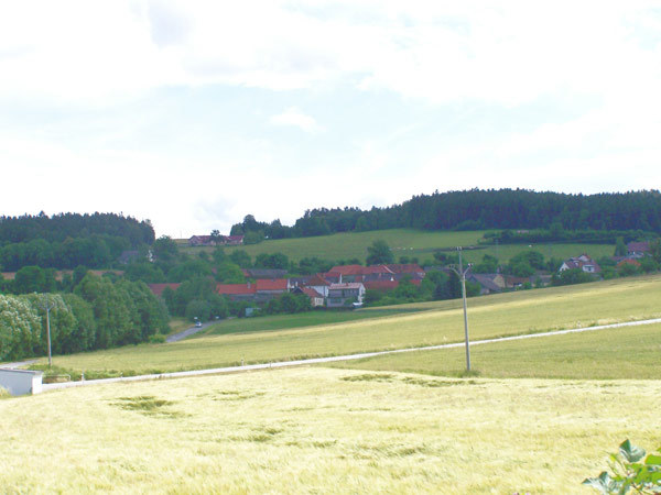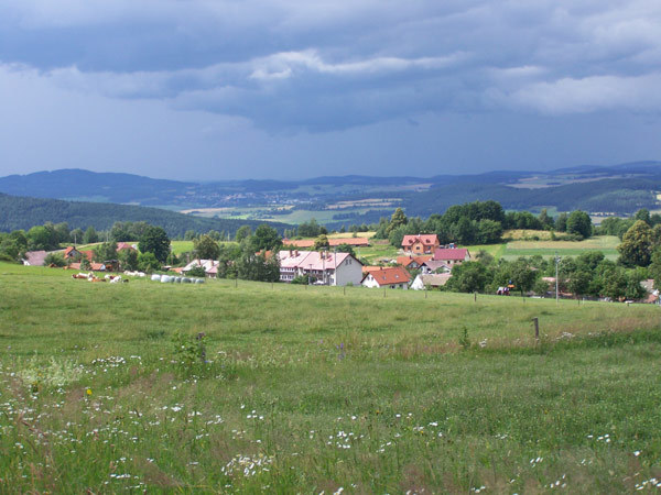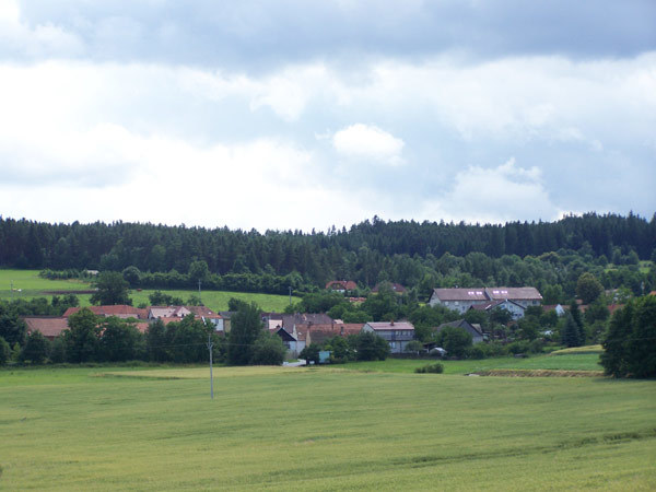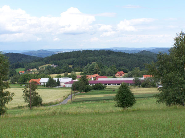 Pohled na obec Žernovice od lomu Kobylí Hora