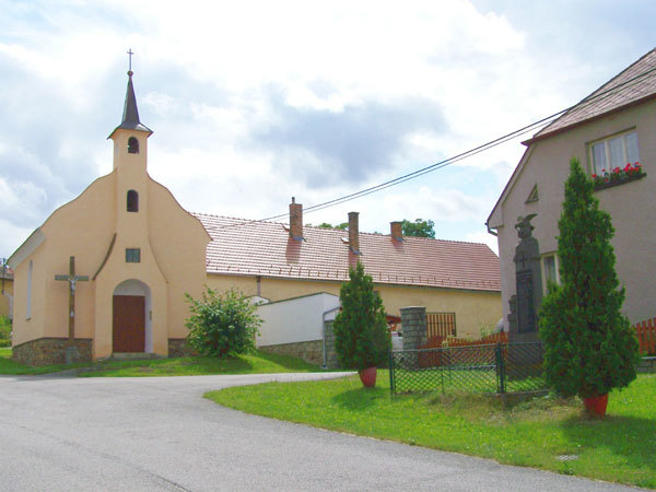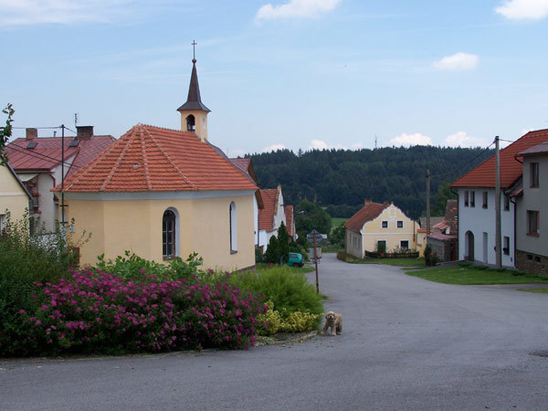 Žernovická náves s pomníkem padlých v I.sv. válce